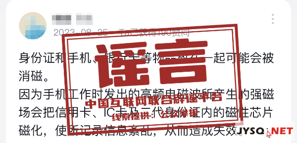 真相:身份證和手機貼合在一起不會被消磁。第二代身份證采用的是無線射頻識別技術,沒有磁條,也就不存在被手機消磁的情況。如果身份證存在無法讀取數據的情況,一般是芯片或線圈損壞造成的。因此,在使用身份證的過程中,要避免重力扭曲、重壓或者放置在高溫下,以防芯片和線圈受損。 來源:“人民網科普”微信公眾號 |